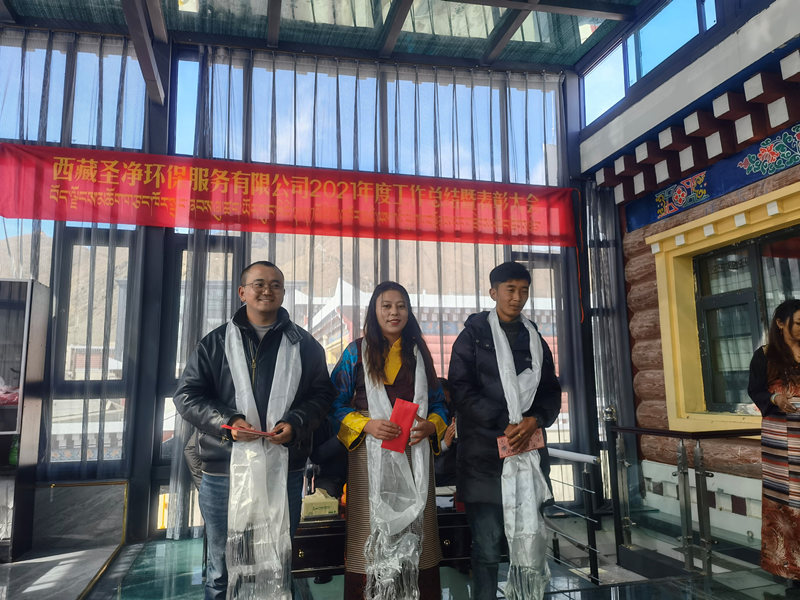 2022年2月25日11:00分,西藏圣凈環(huán)保服務(wù)有限公司在總公司二樓辦公室召開2021年度總結(jié)暨表彰大會。董事長達瓦、股東拉巴次仁、副總經(jīng)理次仁、副總經(jīng)理尼瑪次仁、綜合辦公室主任旦真多吉及各地分公司負責(zé)人、各部門負責(zé)人、優(yōu)秀員工代表和總公司全體員工出席會議。